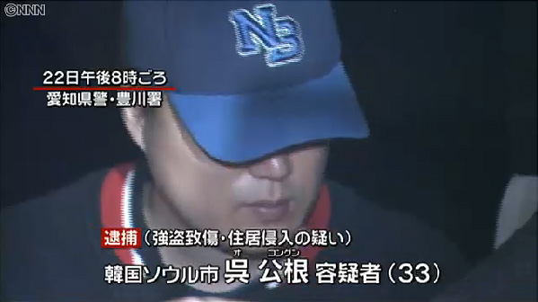 強盗致傷などの疑いで逮捕されたのは韓国ソウル市の呉公根容疑者(33)。