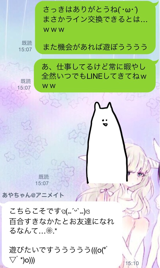 毎日ラインしてるわけよ。で、仕事忙しくて既読無視したらなにかしらいって送って来てくれるわけで可愛くて可愛くてしょうがない