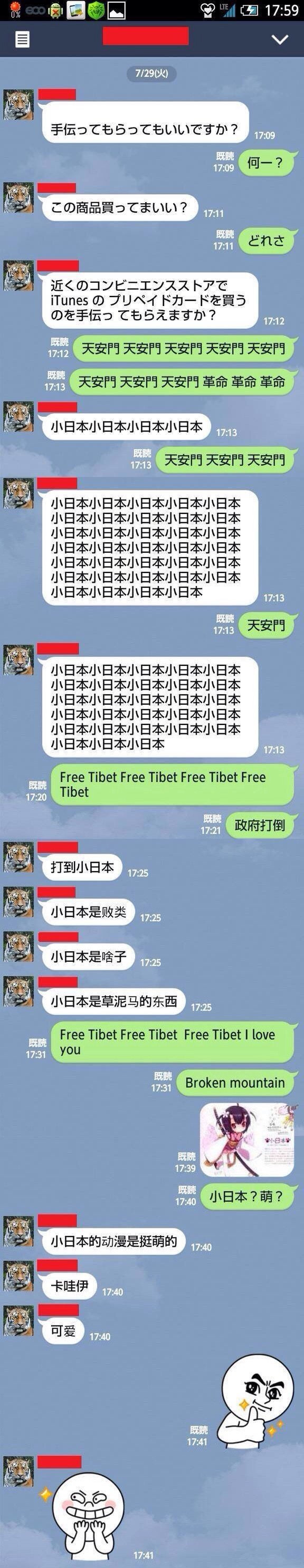 知り合いの中国ハーフの子がLINE乗っ取り犯に北京語で応戦したら、