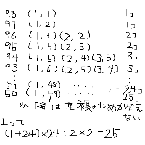 100このりんごを3つのグループにわけるほうほうはなんとおりありますか
