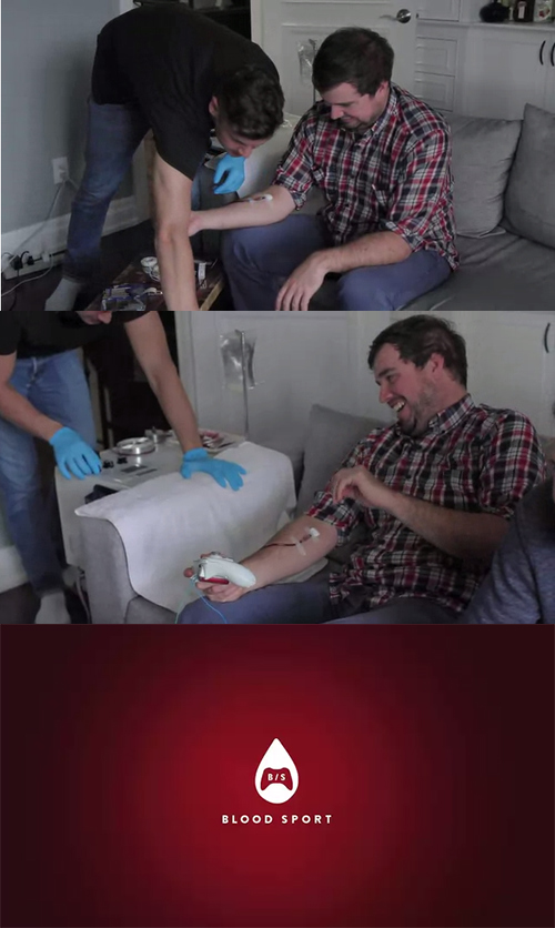 なんとキャラクターがやられるたびに、自分の血液が減って行くという周辺機器「Blood Sport」だ。